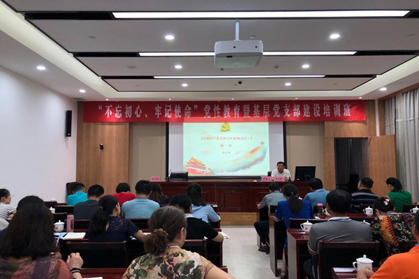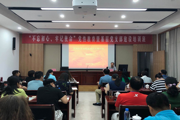 7月22日至7月23日,太阳成集团tyc234cc主页“不忘初心、牢记使命”党性教育暨基层党支部建设培训班在金寨干部学院开班,学院全体党委委员、教工各支部书记、系部主任和辅导员等40余人参加培训班。