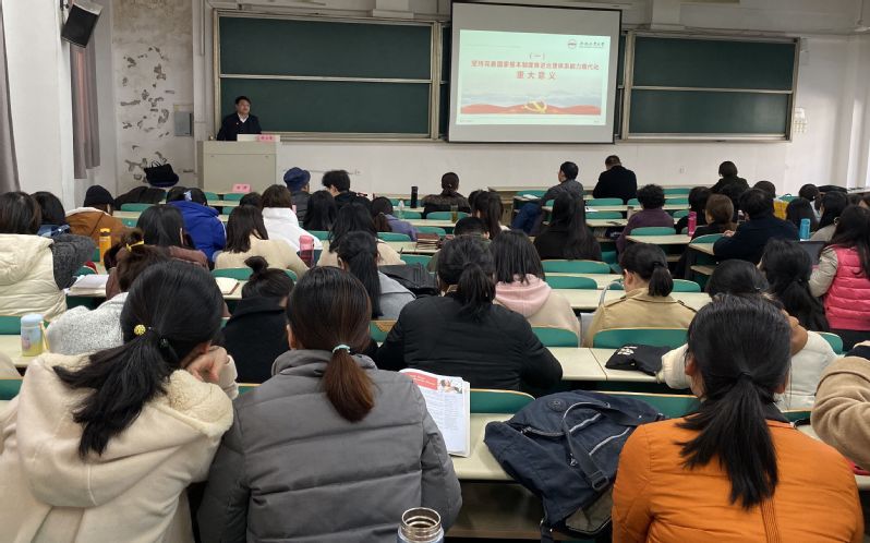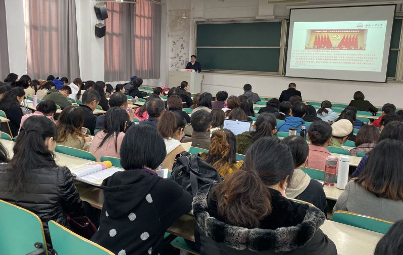 为深入学习贯彻党的十九届四中全会精神,12月11日下午,太阳成集团tyc234cc主页在翡翠湖校区二教202开展中国共产党十九届四中全会精神专题学习活动,邀请学校党委宣讲团成员、纪委副书记陈文恩同志做题为《不断开启“中国之治”新境界——中国共产党十九届四中全会精神宣讲》的专题辅导报告。报告会由学院党委书记胡丹主持,全院教职工和学生党员代表参加了活动。