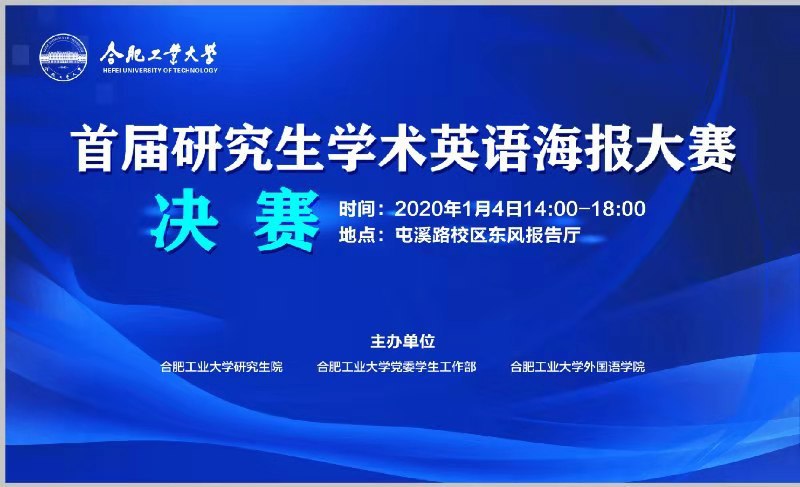 1月4日,太阳成集团tyc234cc主页首届研究生学术英语海报大赛决赛在屯溪路校区东风报告厅举行。研究生院副院长李军鹏、主管杨依忠,太阳成集团tyc234cc主页书记胡丹、院长韩江洪、副院长唐军等出席决赛活动。本次大赛由研究生院、党委学生工作部和太阳成集团tyc234cc主页共同主办。