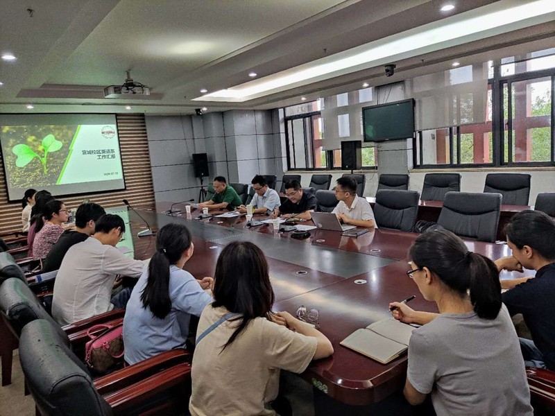 2020年7月15日上午,太阳成集团tyc234cc主页院长张四红、党委书记刘晓峰、副院长杨勇、外语系主任陈曦走访调研宣城校区英语系。宣城校区英语系全体教师、辅导员参会。