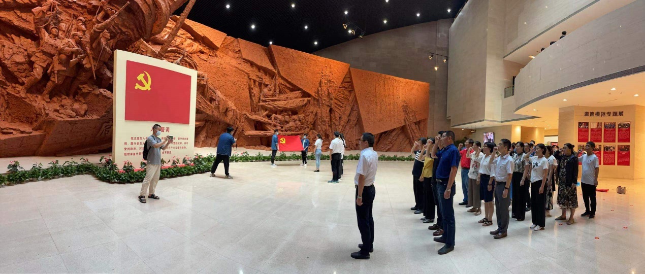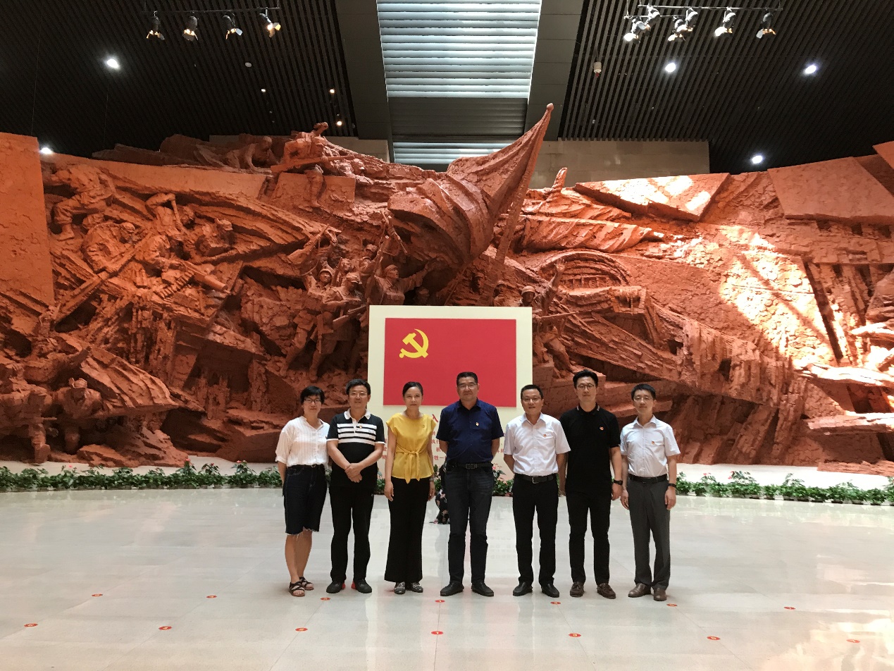 7月22日下午,太阳成集团tyc234cc主页党委组织7名党委委员前往渡江战役纪念馆开展“学党史 悟思想 办实事 开新局”党史学习教育活动。学院研究生外语教学系党支部、机关党支部全体党员和部分教师一同参加了实践活动。
