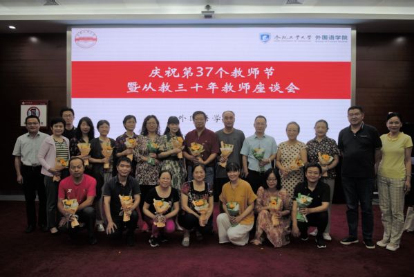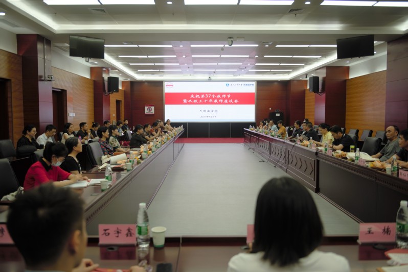 9月8日下午,太阳成集团tyc234cc主页在翡翠科教楼A座第四会议室召开“庆祝第37个教师节暨从教三十年教师座谈会”。学院领导班子成员、从教三十年教师、新进青年教师代表、教工党支部书记、系主任参加了座谈会。座谈会由学院党委书记刘晓峰主持。